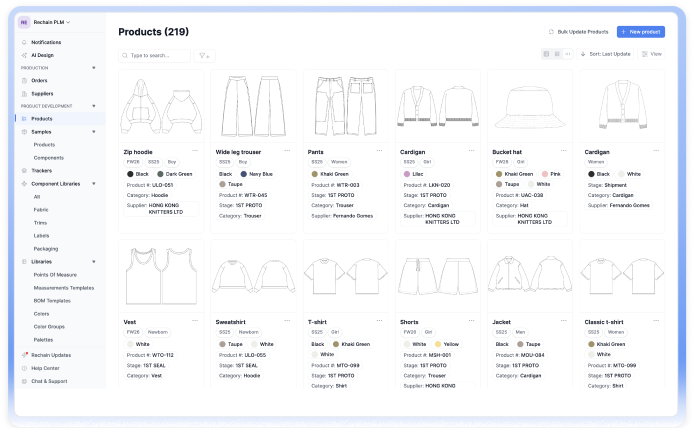 Rechain is built to connect seamlessly with your existing stack, including ERP systems, Shopify, and downstream tools. Data flows automatically across systems, ensuring consistency from product creation to sell-through. Backbone offers fewer native integrations, often requiring manual work or third-party connectors to keep systems in sync.