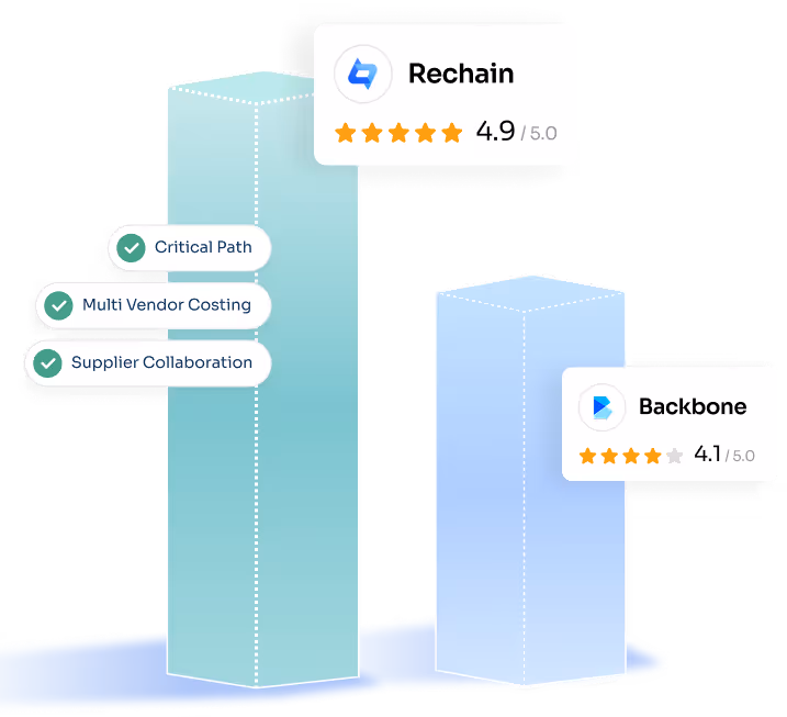 Rechain enables direct, structured collaboration with suppliers around samples, POs, timelines, and approvals. Conversations, files, and actions live in context, reducing back-and-forth emails and misalignment. Backbone offers more static data sharing, with fewer workflow-driven interactions for suppliers.